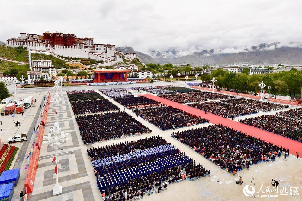 雪域高原欢歌如潮。8月21日上午,西藏各族各界干部群众约2万人齐聚拉萨市布达拉宫广场,热烈庆祝西藏自治区成立60周年。广场上红旗招展、笑语飞扬,处处洋溢着喜庆热烈的节日氛围。